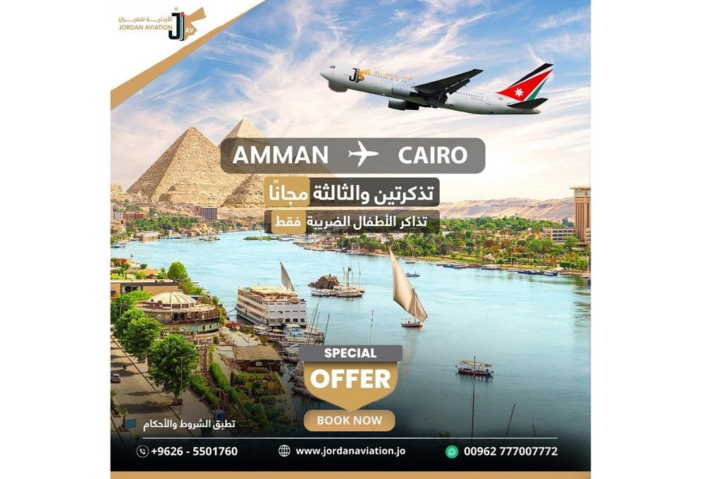 الاردنية للطيران : احجز تذكرتين من عمّان إلى القاهرة و احصل على الثالثة مجاناً