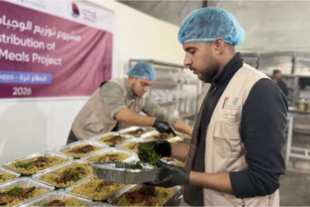 الهيئة الخيرية الهاشمية والهلال الأحمر القطري يوزعان وجبات على الأسر في غزة