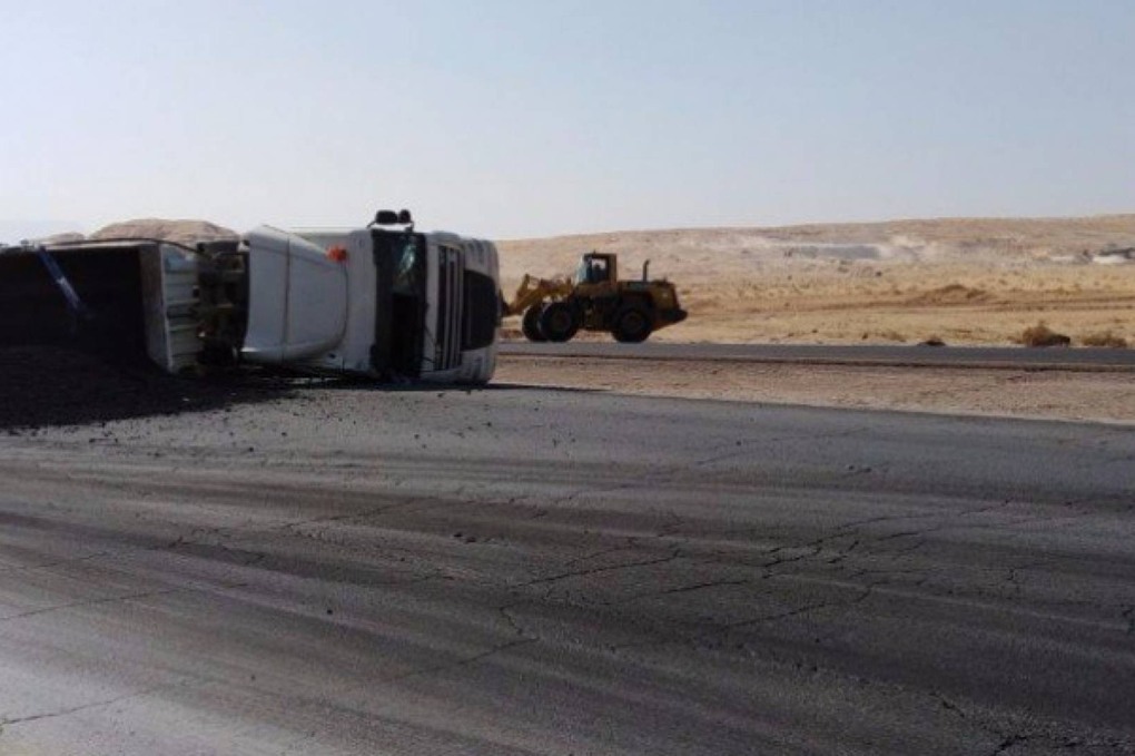 انقلاب شاحنة على الطريق الصحراوي بعد سجن سواقة